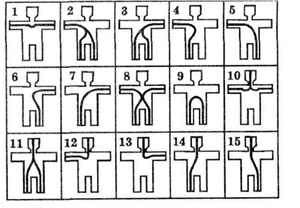 Существенное значение имеет и путь протекания тока через тело человека. Наиболее часто встречающиеся пути протекания тока через организм человека: «правая рука — ноги», «левая рука — ноги», «рука — рука», «нога — нога» (рис. 1).