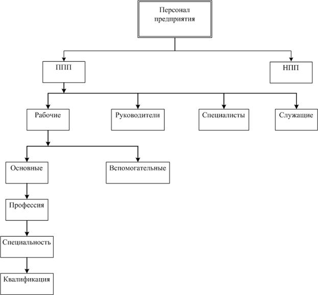 Под кадрами предприятия принято понимать основной (штатный) состав работников предприятия. В зависимости от выполняемых функций и степени участия в производственной деятельности все работники делятся на промышленно-производственный и непромышленный персонал.